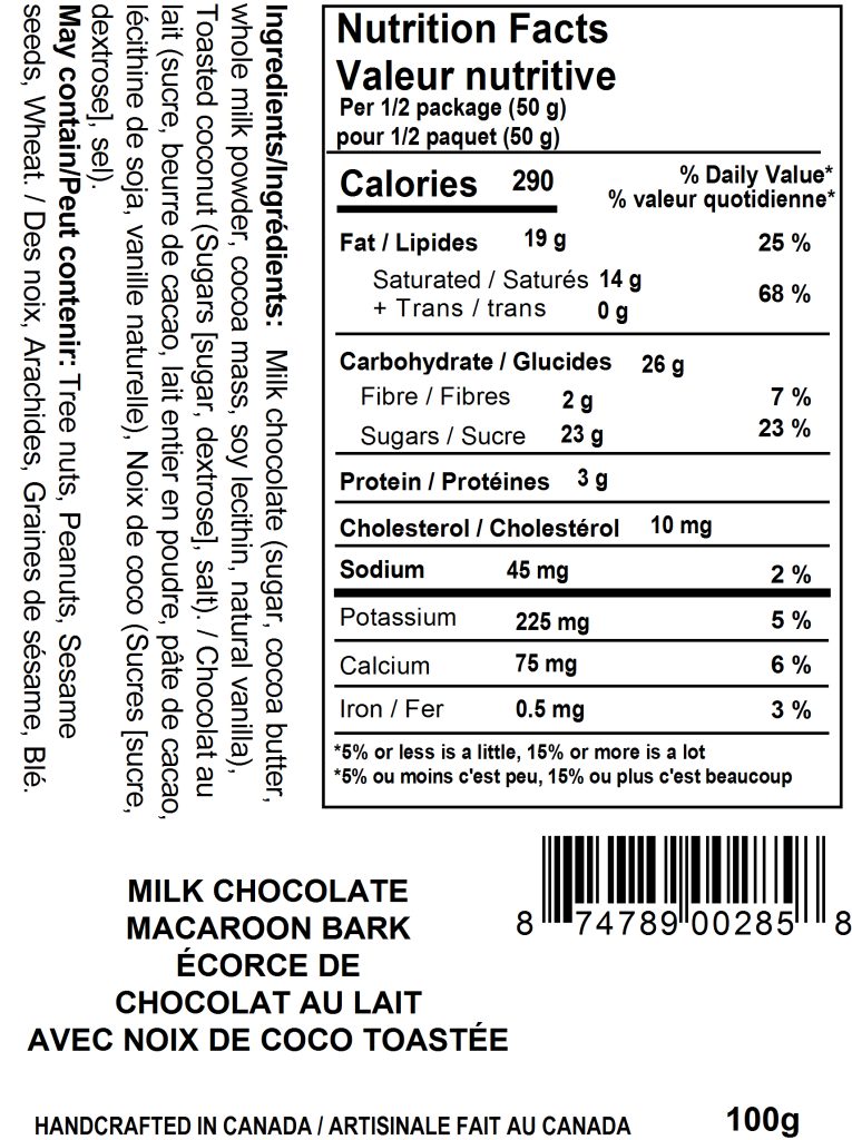 Chocolate Bark - Packaged - Back Label - macaroon Macaroon